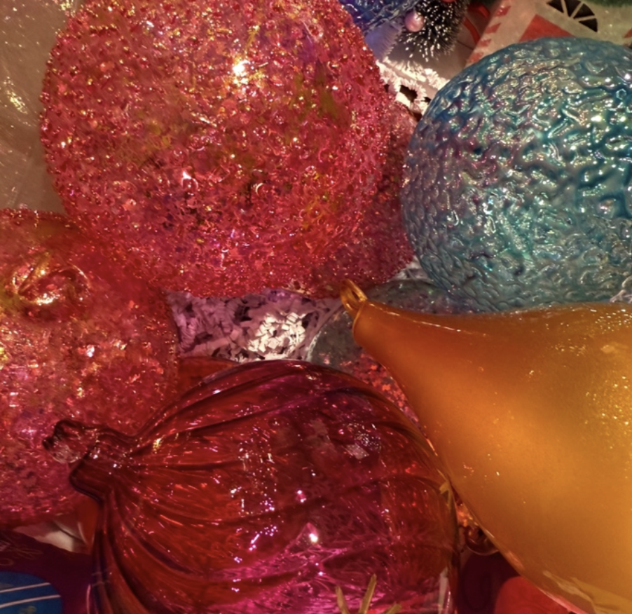Glass Christmas Tree, Two Holiday Houses, Mary Cates & Co. $150 Gift Card, and 68 Mary Cates' Assorted Beautiful Glass OrnamentsSorry, this event is Sold Out